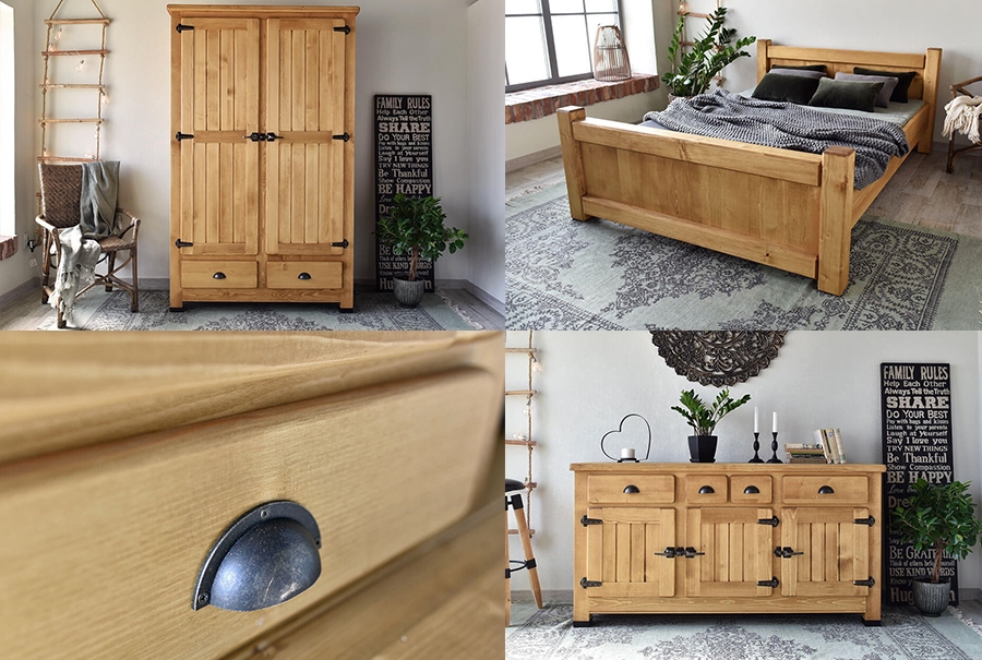 Většina farmářských interiérů byla vyplněna jednoduchým dřevěným nábytkem. Jaký typ nábytku použijete vy, je jen na vás, ale přesto doporučujeme držet se masivního dřevěného nábytku s čistými a jednoduchými liniemi. Chcete-li, aby váš interiér nabyl modernějšího dojmu a vy jste se tak cítili pohodlně a harmonicky? Doplňte interiér látkovým křeslem, polstrovanými jídelními židlemi nebo textíliemi v zemitých barvách, jako jsou polštáře či patchwork přikrývky.